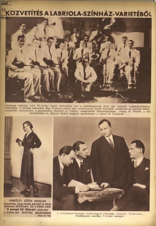 Élő közvetítés egy varietéből****1933-ban, egy márciusi délelőtt ismét a Labriola Színház Varietéből közvetítette adását a rádió. Egy párizsi jazz-band, operaénekesek, gumiemberek és két csodaelefánt biztosította a felhőtlen szórakozást.