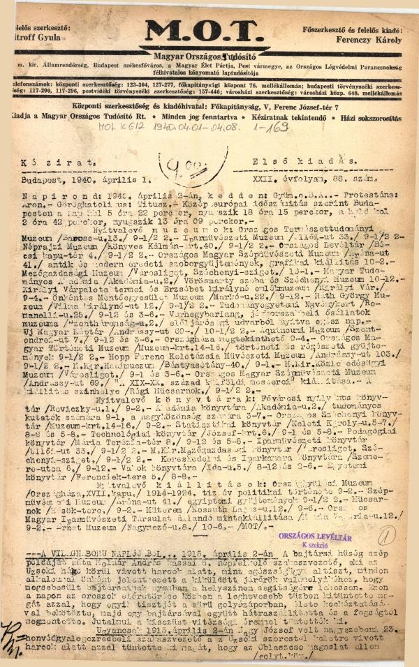 1929 január 2 - 1944 augusztus 31