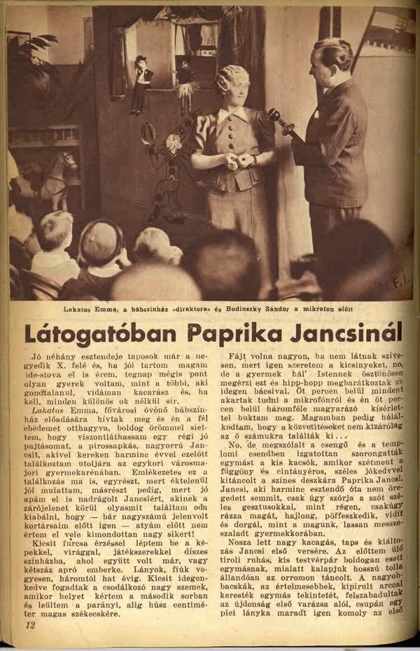 Látogatóban Paprika Jancsinál****1938 májusában a Magyar Rádió is műsorára tűzte a híres vásári bábjátékot, melynek címadó hőse a verekedős, de jólelkű Paprika Jancsi, a szegények és bajba jutottak védelmezője.