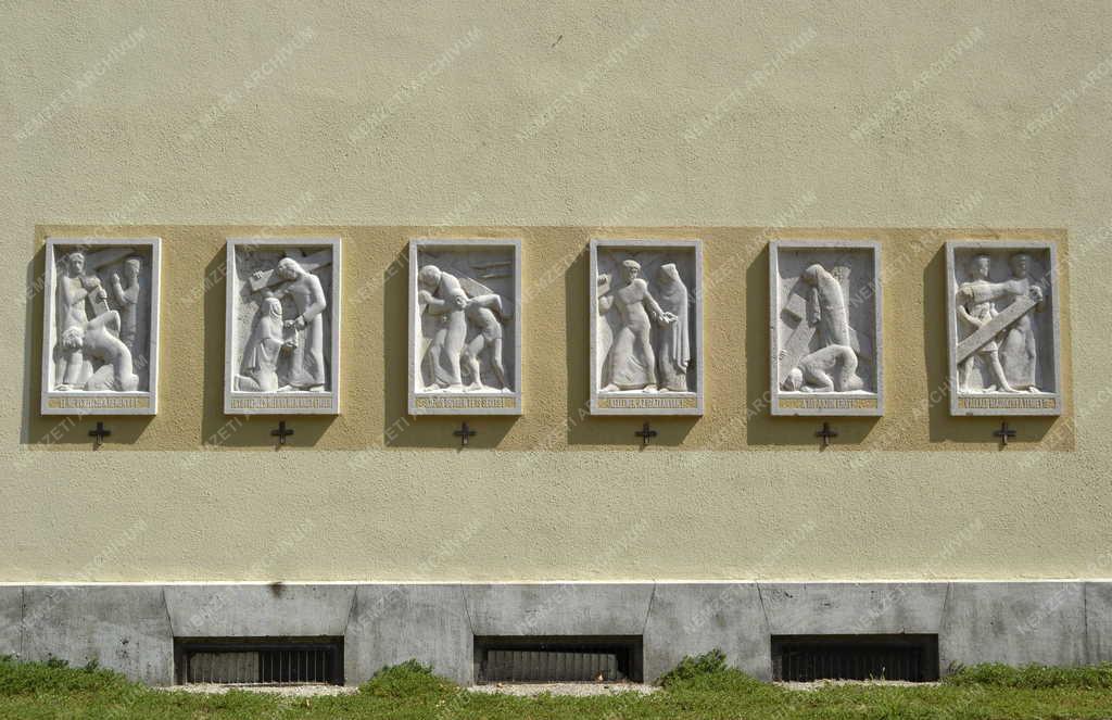 A keresztút stációi a Tisztviselőtelepi Magyarok Nagyasszonya-plébániatemplom oldalsó falán a főváros VIII. kerületében, a Rezső téren. A domborművek Tarr Miklós szobrászművész 1977-ben készült alkotásai.