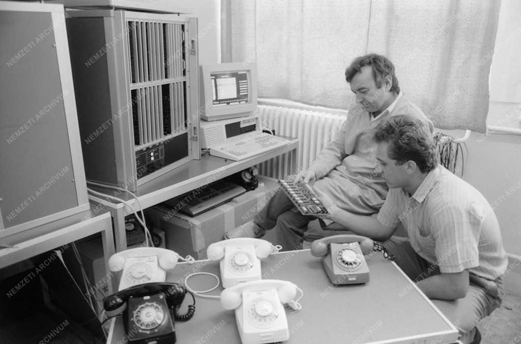 A BHG Híradástechnikai Vállalat munkatársai egy információs alközpont prototípusának végbemérését végzik a BHG kísérleti üzemében. Az alközpont az információ átadásában, illetve fogadásában érdekelt intézmények – vasút, mentők, tűzoltók, légi közlekedés – rugalmasabb, hatékonyabb, gyorsabb és megbízhatóbb munkáját teszi lehetővé.