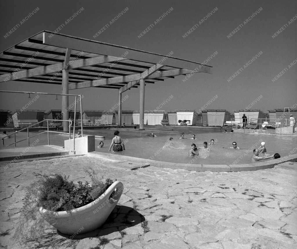 Fürdőzők a büki termálfürdő egyik medencéjében.