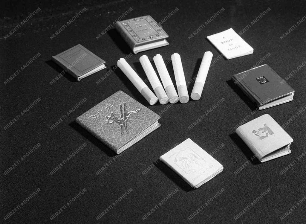 A budapesti Egyetemi Nyomda igazgatója háromszázhatvannyolc kötetet számláló miniatűr könyvgyűjteményének néhány mikroszkopikus darabja a cigaretta méreténél is kisebb.