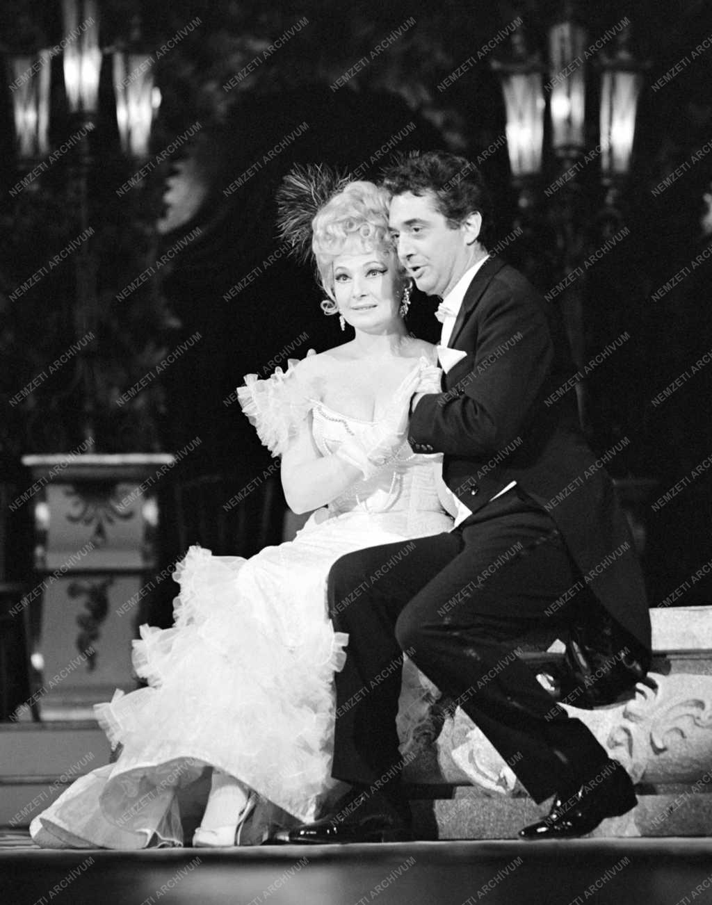 Petress Zsuzsa operetténekes és Bende Zsolt operaénekes (Daniló) játszik Lehár Víg özvegy című három felvonásos operettjében a Fővárosi Operett Színház előadásában. Rendező: Seregi László.