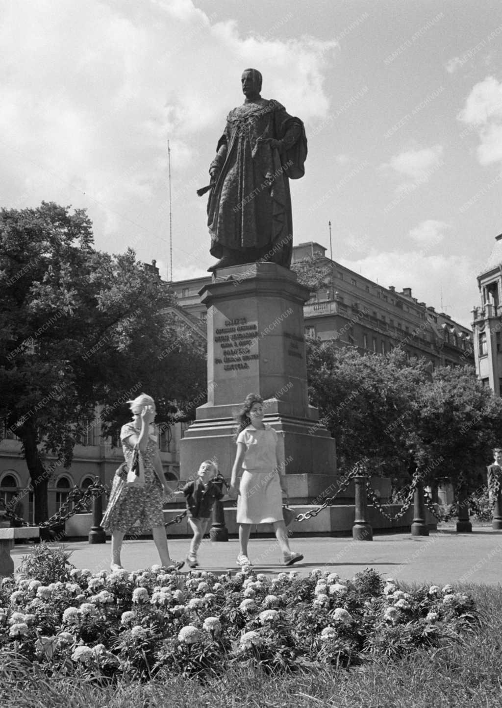 Járókelők sétálnak József Nádor szobra előtt a róla elnevezett téren.