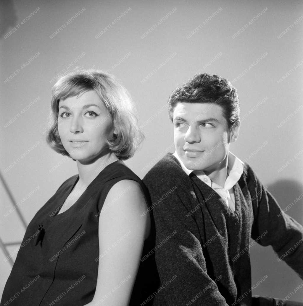Sztankay István, a budapesti Nemzeti Színház tagja és második felesége, az első gyermeküket váró Kun Magda színésznő műtermi fotózáson.