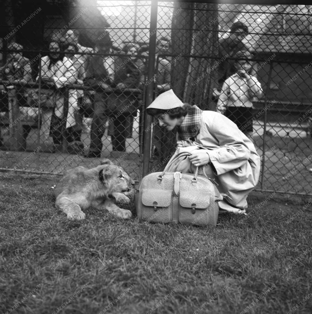 Fiatal nő simogatja az oroszlánkönyköt a Fővárosi Állat- és Növénykertben.