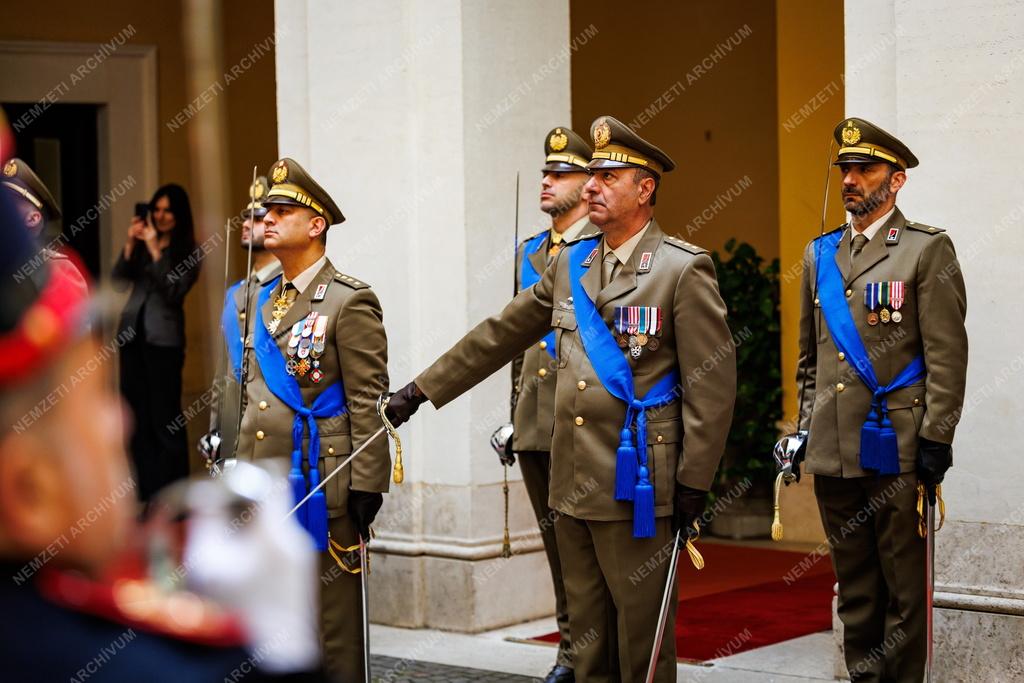 A Sándor-palota által közreadott képen díszőrség a Szuverén Máltai Lovagrend római épületében, ahol Sulyok Tamás köztársasági elnököt fogadta Fra John Dunlap, a lovagrend nagymestere 2024. április 26-án.