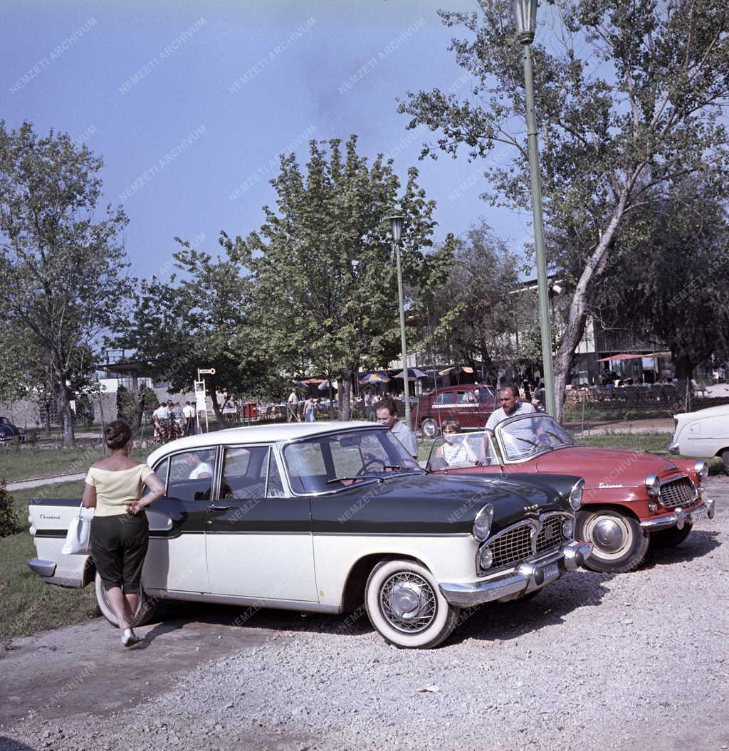 Személyautók - Simca Chambor és Skoda Felícia -parkol a motel és kemping parkolójában.