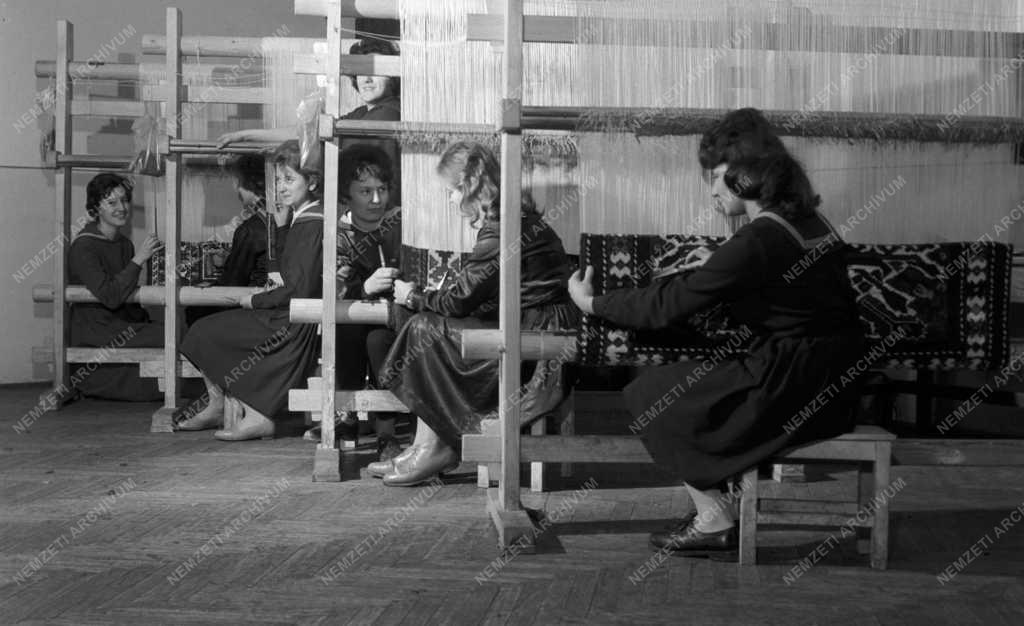 A Kossuth Leánygimnázium diákjai perzsaszőnyegszövést tanulnak politechnikai oktatásukon.
