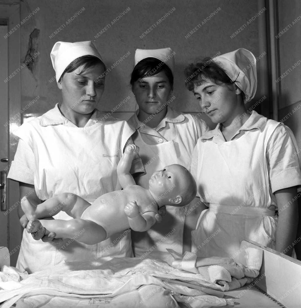 Csecsemő helyes tartását sajátítják el a Szentesi Egészségügyi Szakiskola tanulói. A tízéves fennállását ünneplő oktatási intézményben ez idő alatt mintegy háromszáz ápolónő végzett. Jelenleg 35 hallgatója van a szakiskolának, akik 2 év alatt sajátítják el a szükséges ismereteket.