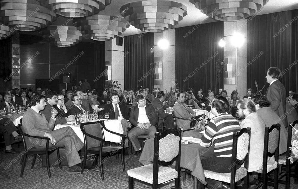 A XVI. Magyar Játékfilmszemle társadalmi zsűrije nyilvános ülésének résztvevői, a Royal Étteremben Budapesten.