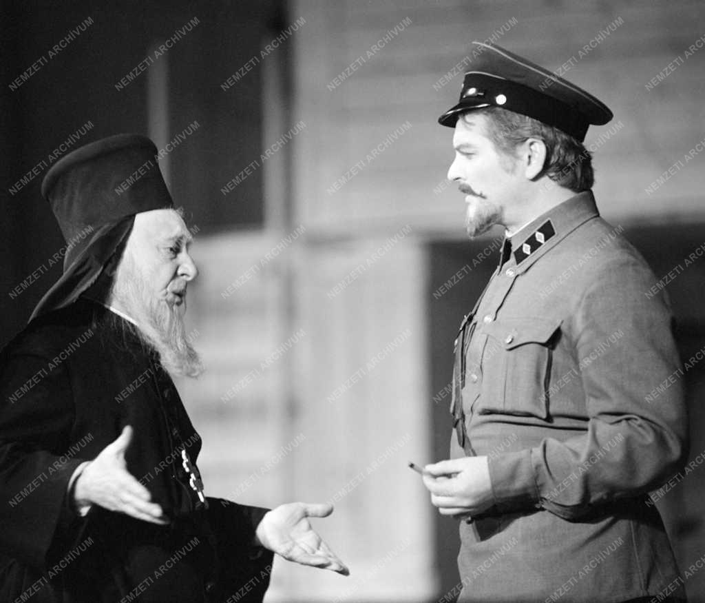 Peti Sándor Diakónus (b) és Szabó Gyula Gromov szerepében Nyikolaj Pagogyin Arisztokraták című vígjátékának próbáján a Thália Színházban. Az előadást október 21-én mutatják be Kazimir Károly rendezésében.