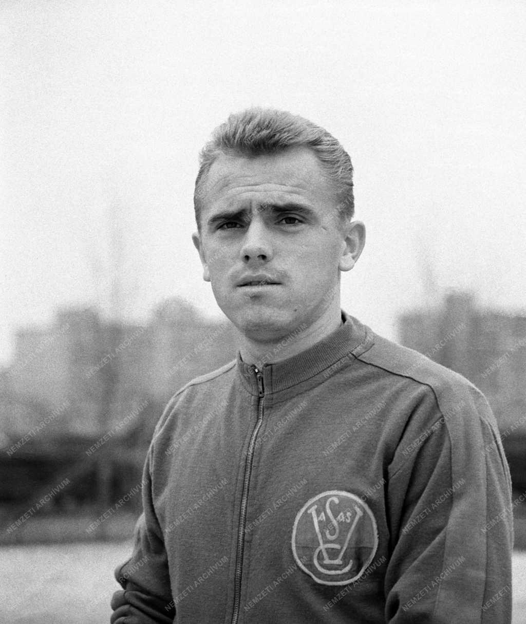 Mészöly Kálmán, a bajnokjelölt Vasas SC labdarúgója csapattársaival a bajnoki idény utolsó összecsapására, a Salgótarján elleni mérkőzésre készül.