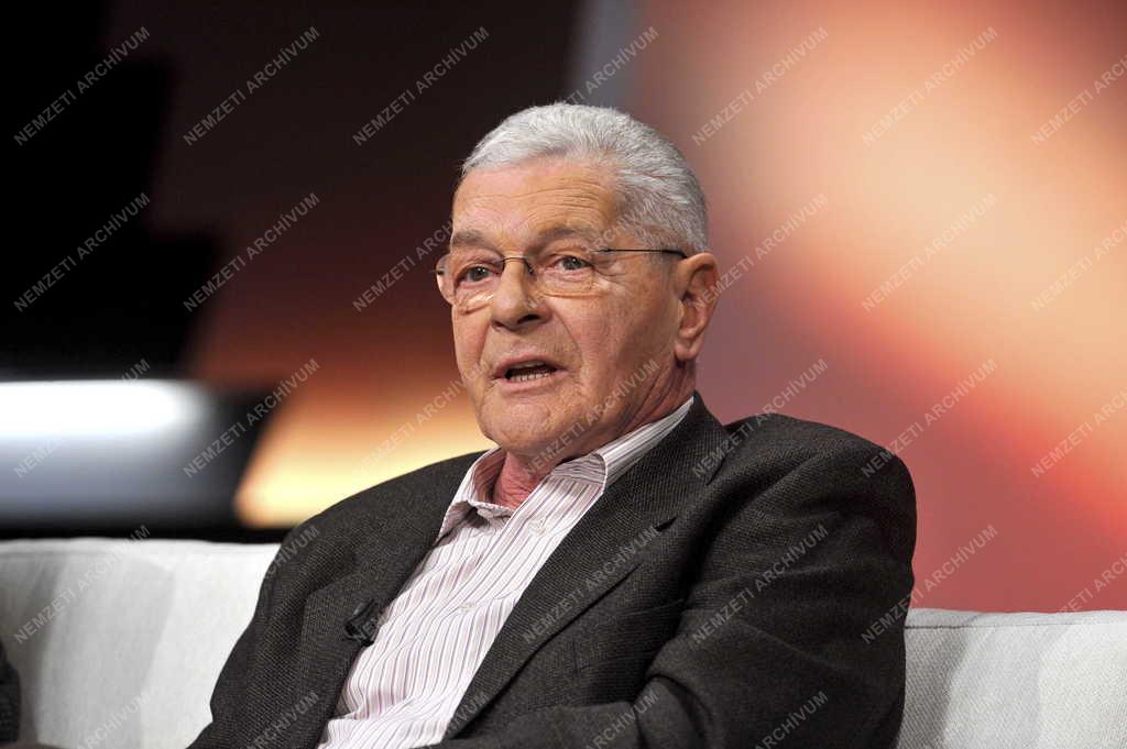 Mécs Károly Kossuth- és Jászai Mari-díjas színművész, rendező, érdemes- és kiváló művész a Hogy volt!? című tv-műsor felvételén, az MTVA Kunigunda utcai gyártóbázisának 3-as stúdiójában. A műsorban Papp Éva Jászai Mari-díjas színésznő szerepeit idézték meg.