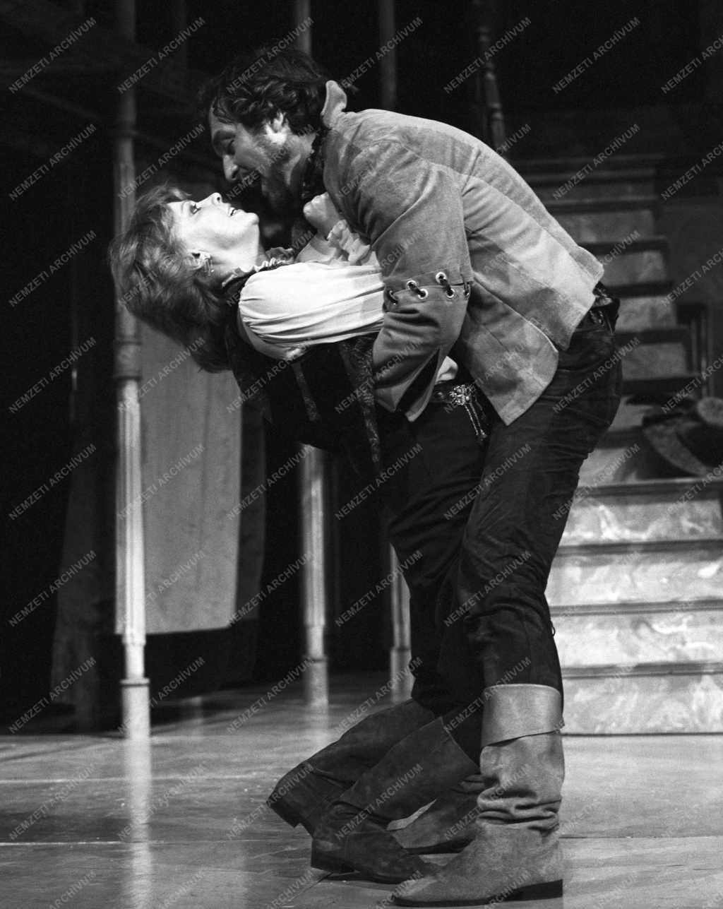 Almási Éva Kata és Huszti Péter Petruchio, Kata kérője szerepében, Shakespeare Makrancos hölgy című vígjátékának próbáján. A színművet február 13-án mutatják be a Madách Színházban, Szirtes Tamás rendezésében.