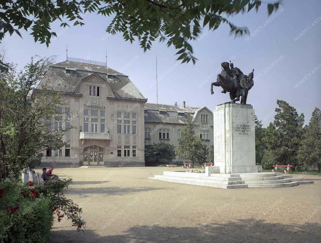 I. világháború hősi halottainak emlékműve (13. Jászkun huszárezred emlékműve) Gáldi Gyula alkotása (1938) a Kossuth téren, a Tanácsháza (Városháza) előtt.
