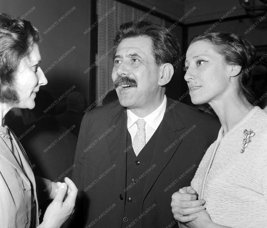 Géczy Éva balettművész, balettpedagógus, koreográfus, balettmester (b), Aczél György a művelődésügyi miniszter első helyettese és Maja Pliszeckaja szovjet balettművész a vendégszereplésen Moszkvában fellépő Magyar Állami Operaház balettkara tiszteletére adott fogadáson.
