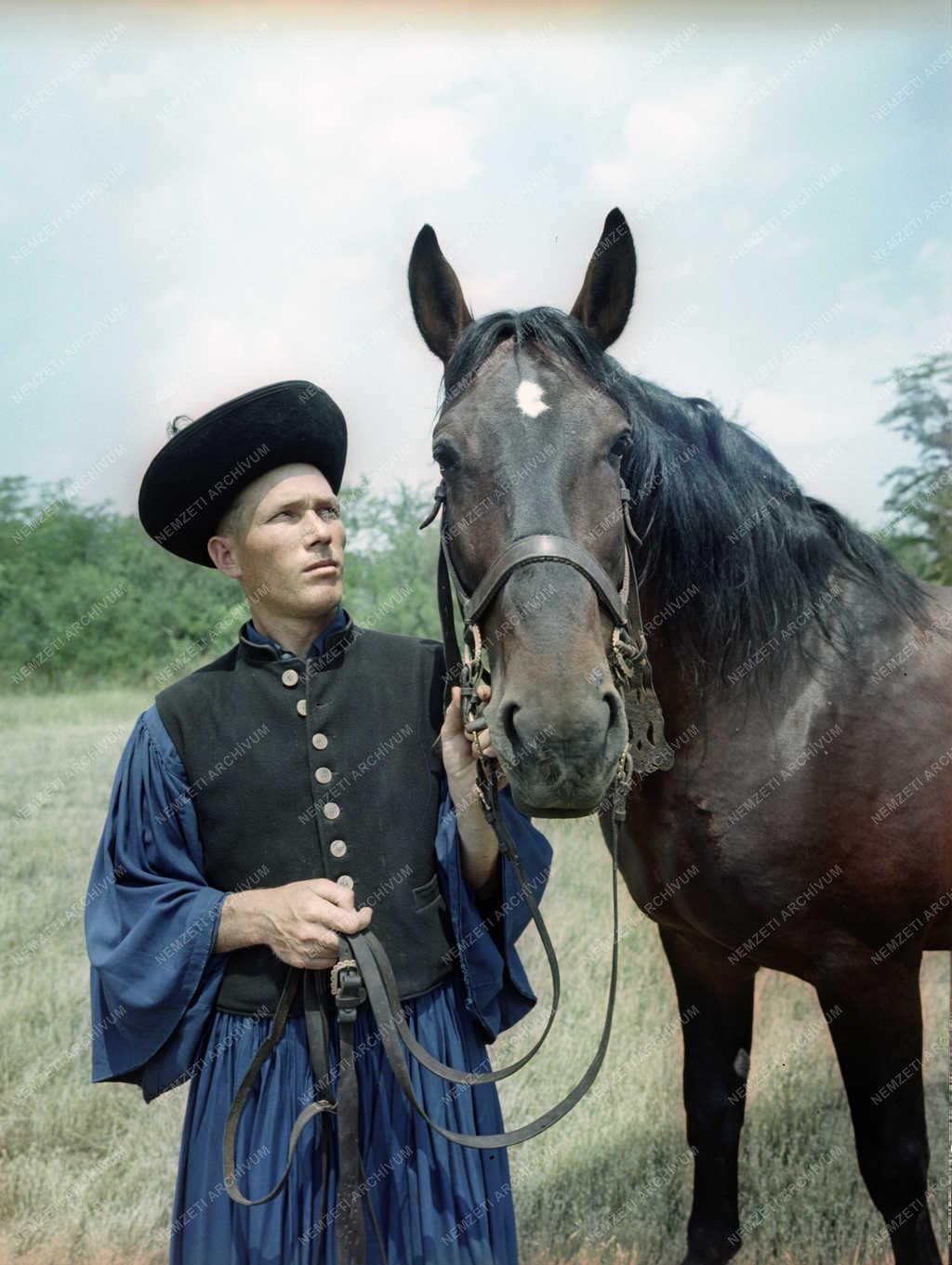 Garai István csikós, ménápoló a Nónius XXXIX fajtájú lóval a Hortobágyi Állami Méntelepen.