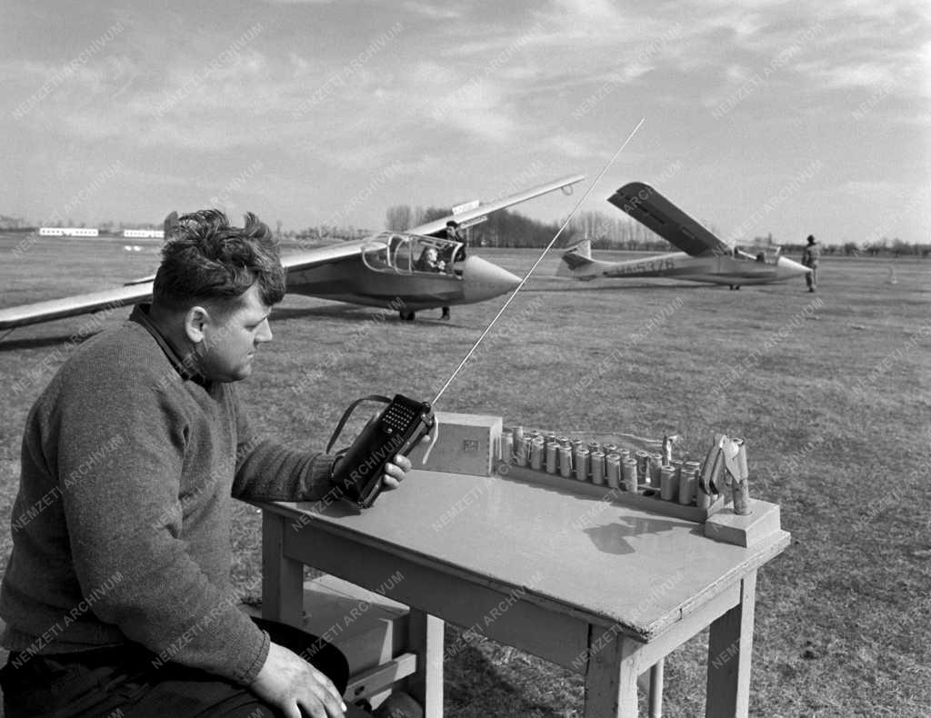 Az MHSZ (Magyar Honvédelmi Szövetség) klub egyik régi tagja, Bugi Ferenc, a Békéscsabai 8-as AKÖV (Autóközlekedési Vállalat) gépkocsivezetője URH rádión keresztül oktatja a levegőben tartózkodó gép pilótáját.