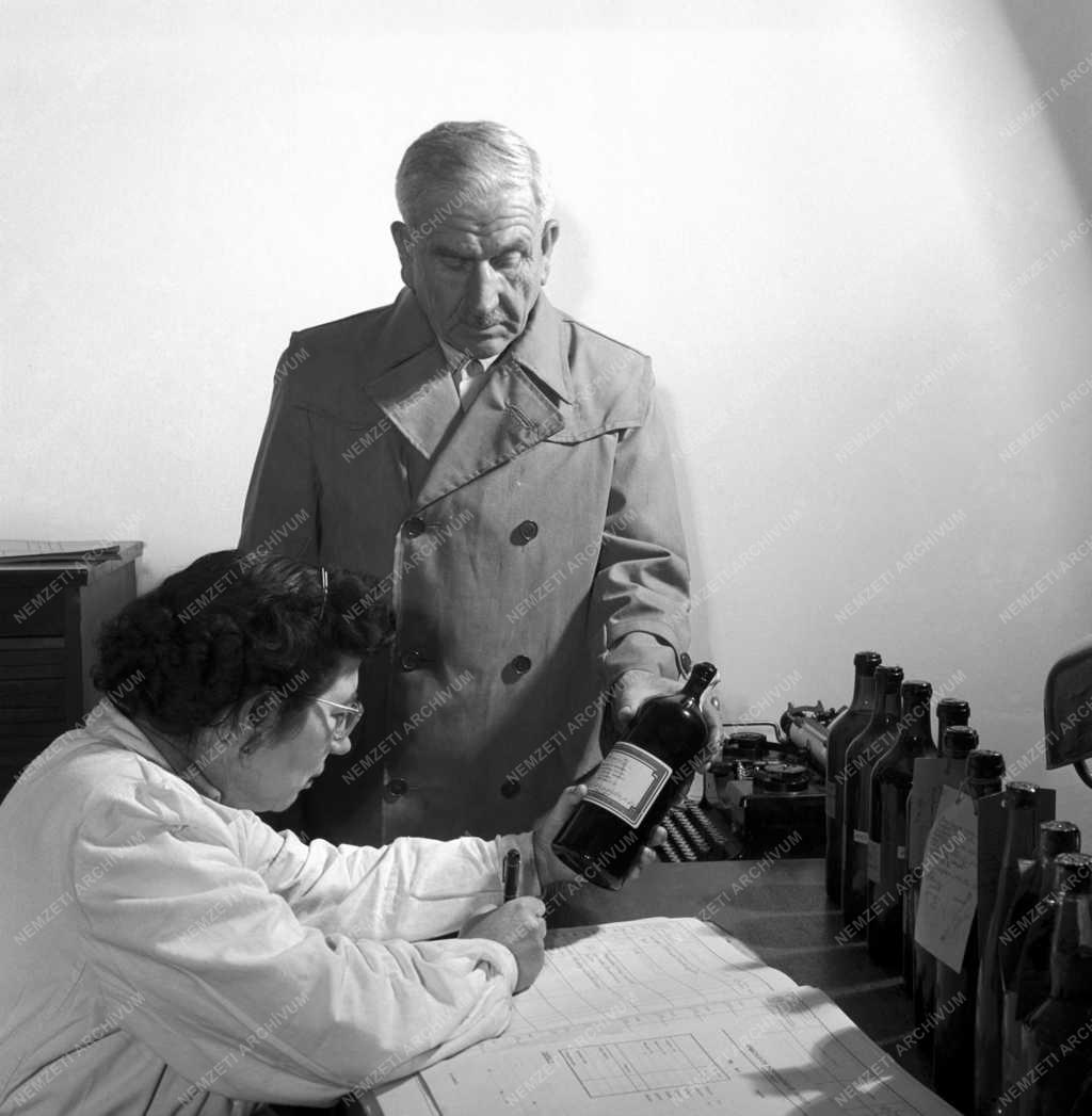 Nemes Simon, a szentantalfai Szőlőtermelő Csoport budapesti üzletének üzletvezetője által vizsgálatra hozott bort könyveli be a Boripari Kutató Intézet munkatársa. Az intézet ad szakvéleményt a forgalomba kerülő borok minőségéről, ellenőrzi a borforgalmi vállalatok laboratóriumait és pincészetét, valamint az italboltok borkezelését is.