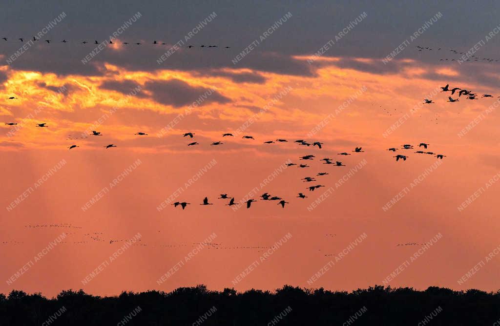 Finnországból és nyugat- oroszországi területekről érkeznek szürke darvak (Grus grus) a Hortobágyra, ahol addig időznek, míg táplálékot találnak és be nem fagynak az éjszakázó tavak. A 180-240 centiméter szárnyfesztávolságú madarak nappal és este látványos, csoportos repüléssel keresik fel a kukorica földeket és a vízállásokat, tocsogókat.