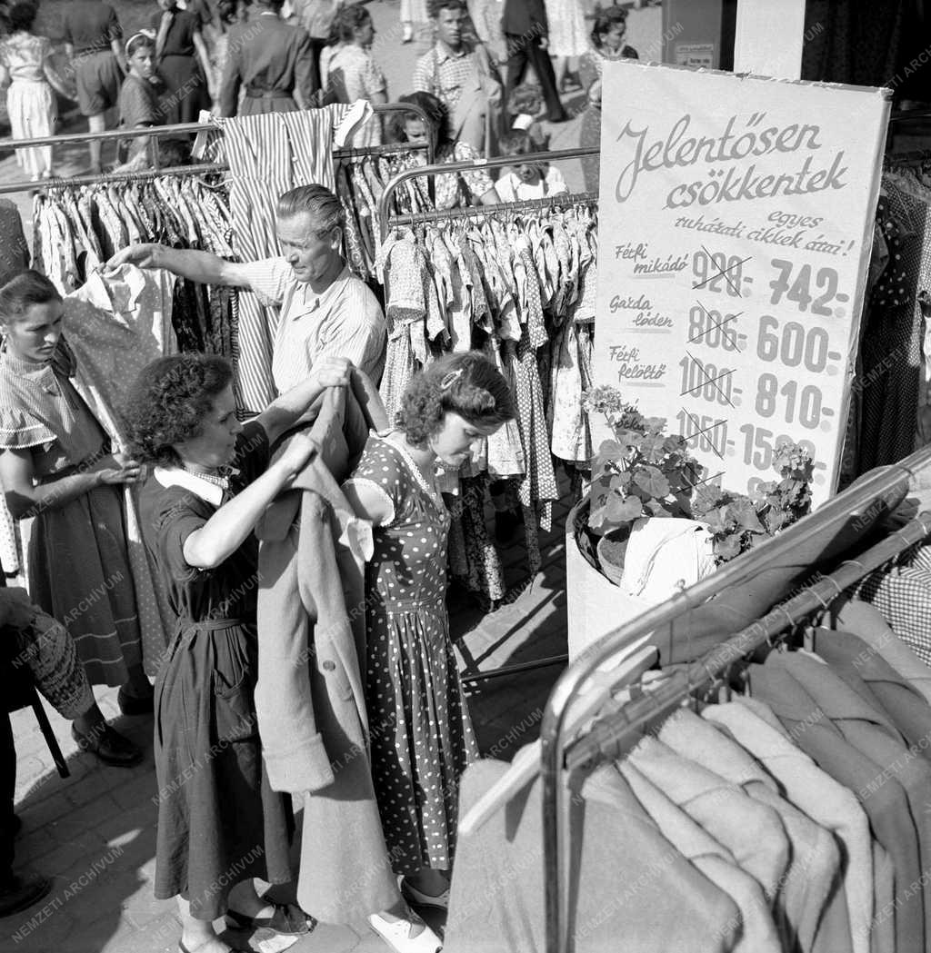 Olcsóbb lett a ruházati cikk, örömmel válogatnak belőle a lányok, asszonyok a július 18-19-én megrendezett nagyszabású kecskeméti "hírös vásáron".