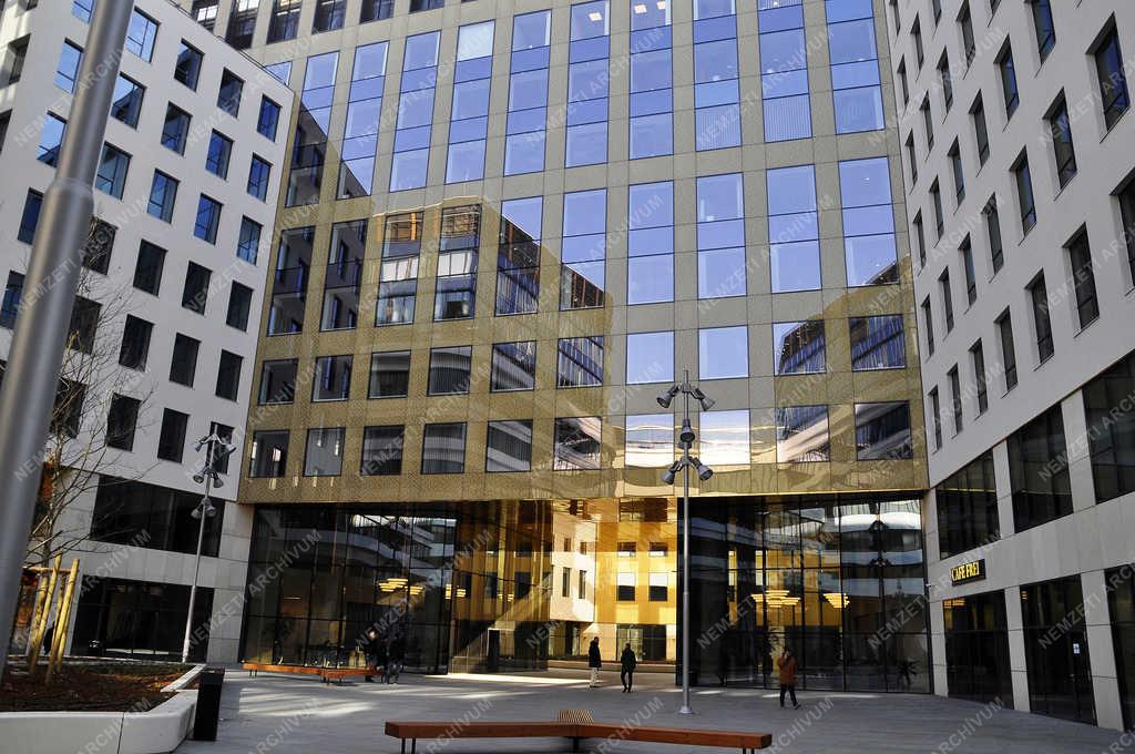 Egy újonnan elkészült irodaház a Corvin negyedben. Közép-Európa legnagyobb városrész-megújítási programja keretében összesen 22 hektár terület újult, illetve újul meg. A területen 2700 új lakás, 100 000 négyzetméter irodaterület és 50 000 négyzetméter kereskedelmi ingatlan épült.