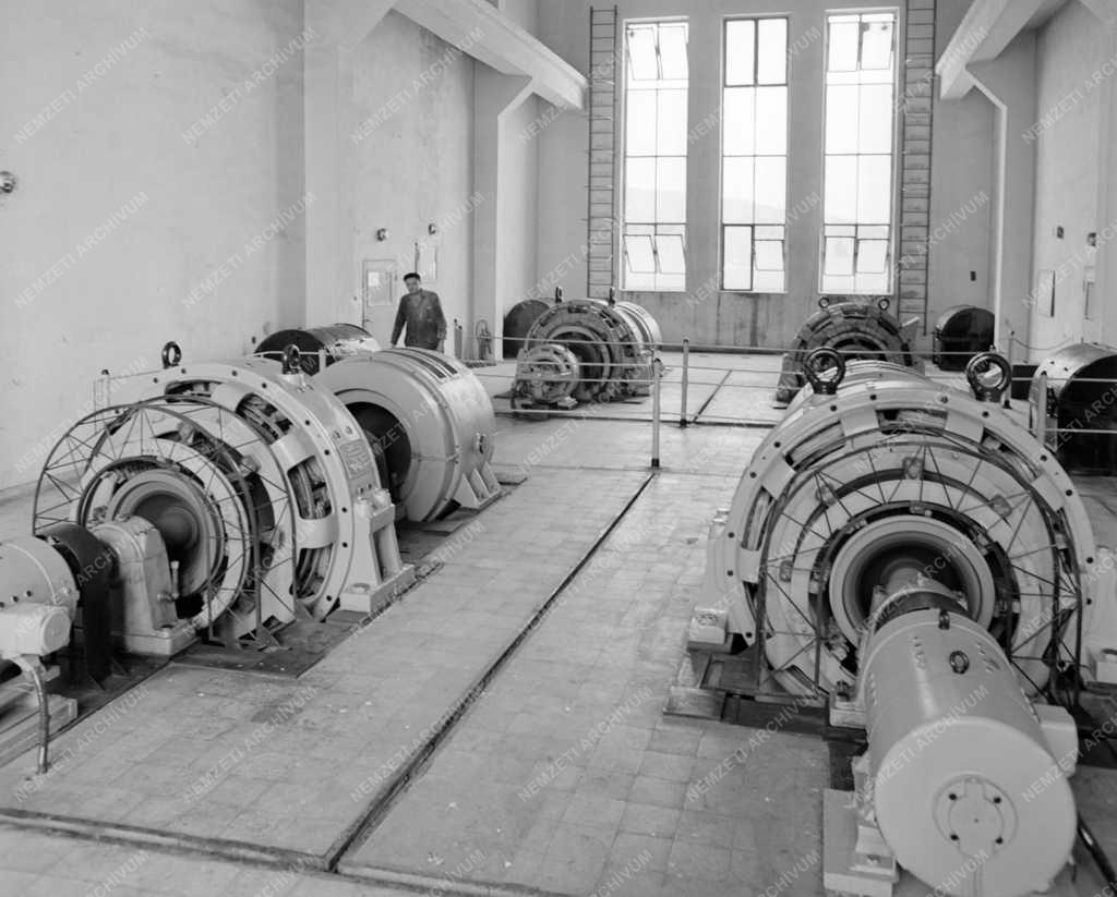 Nimsz Lajos a nagy teljesítményű dinamókat ellenőrzi, melyek a komlói szénbányák Zobák-aknájának üzemeltetéshez szükséges villamosenergiát állítják elő.