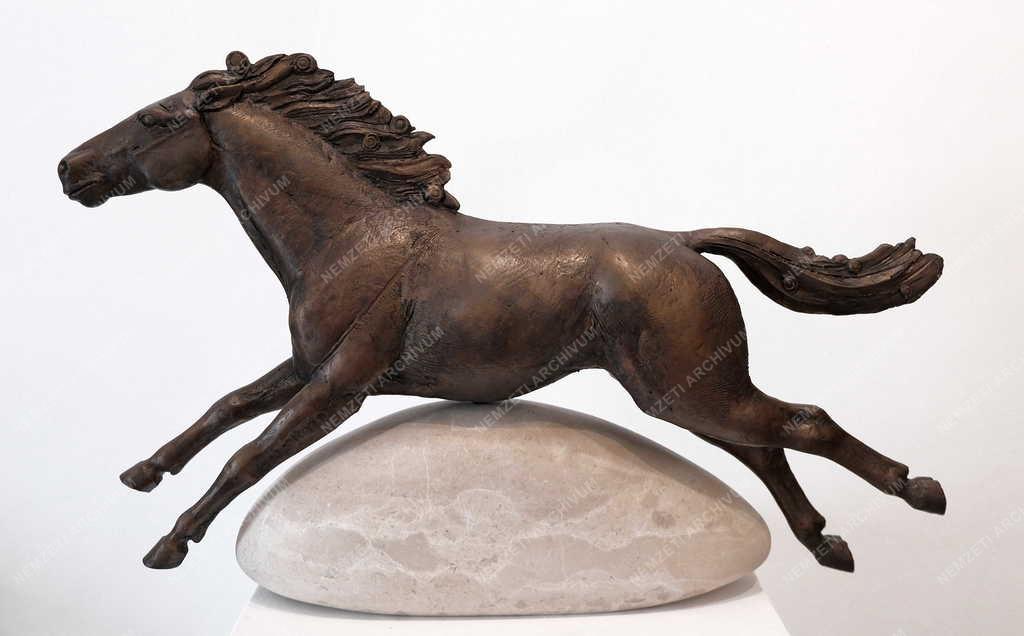 Tóth Dávid szobrászművész Suhanás című bronz alkotása a Gorka Géza Kerámia Múzeum, Szobor gondolatok az állatokról című kiállításán. A 48 éves művész Verőcén él, itt épített műtermet és alkot a Lósi völgyben. Korai munkái az állatvilág figuráit ábrázolták. A lovakkal régi a családi kapcsolat, miután nagyapja a világhírű Balczó öttuscsapat lovasedzője volt, apja pedig Munkácsy Mihály-díjas szobrászművész, díjugrató bajnok. Természetesen saját maga is tart lovakat és lovagol.