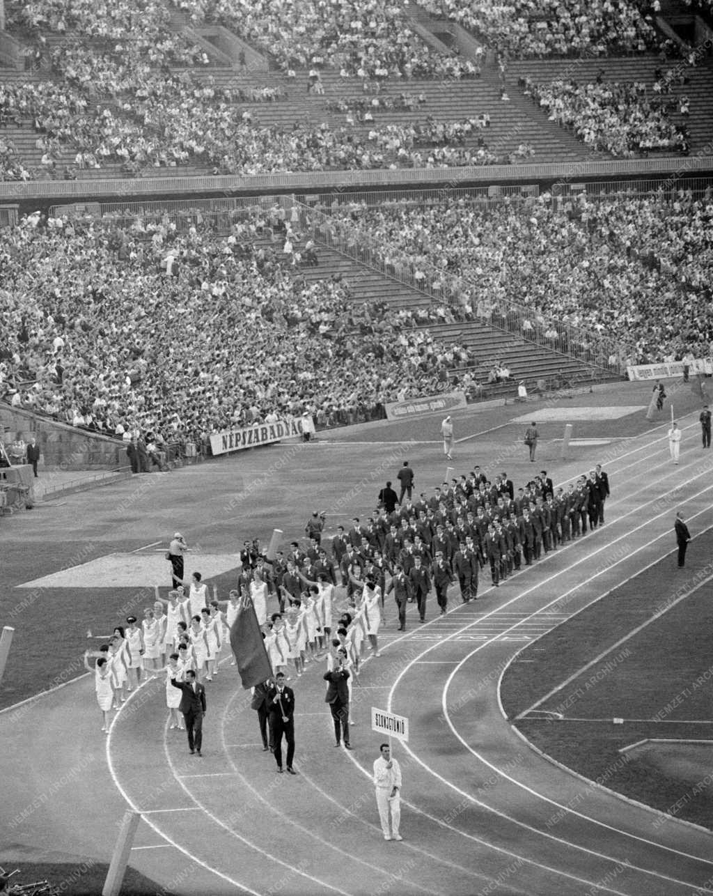 A Szovjetunió sportolói vonulnak be az egyetemi sportolók számára több sportágban augusztus 20-a és augusztus 30-a között megrendezésre kerülő Universiade megnyitójára a Népstadionba. A versenyeken harminckét ország 1729 sportolója vesz részt.