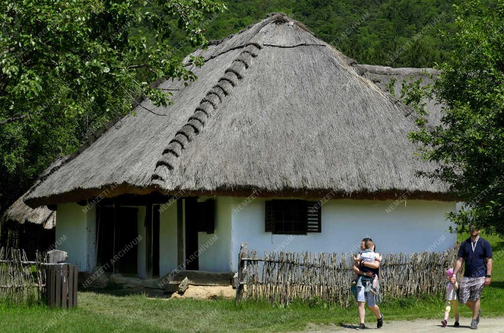 Fiatal szülők két apró gyermekükkel sétálva járjákbe az ötvenkét éve megnyílt Szentendrei Szabadtéri Néprajzi Múzeum területét.