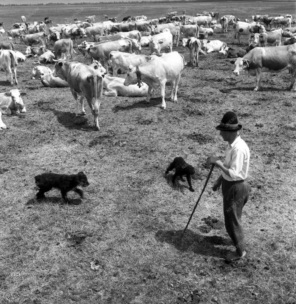 Győri István számadó gulyás, a bokrosi Kossuth tsz tagja legelteti a teheneket.