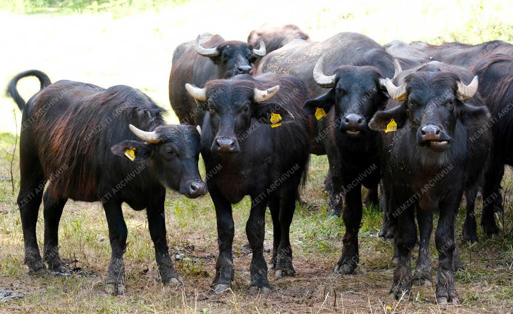 Szob külterületén bivalyokat tenyésztenek ridegtartásban villanypásztorral őrzött területen a Sántha család biogazdaságában. A népes állomány most időlegesen Ipolydamásd határában legel.