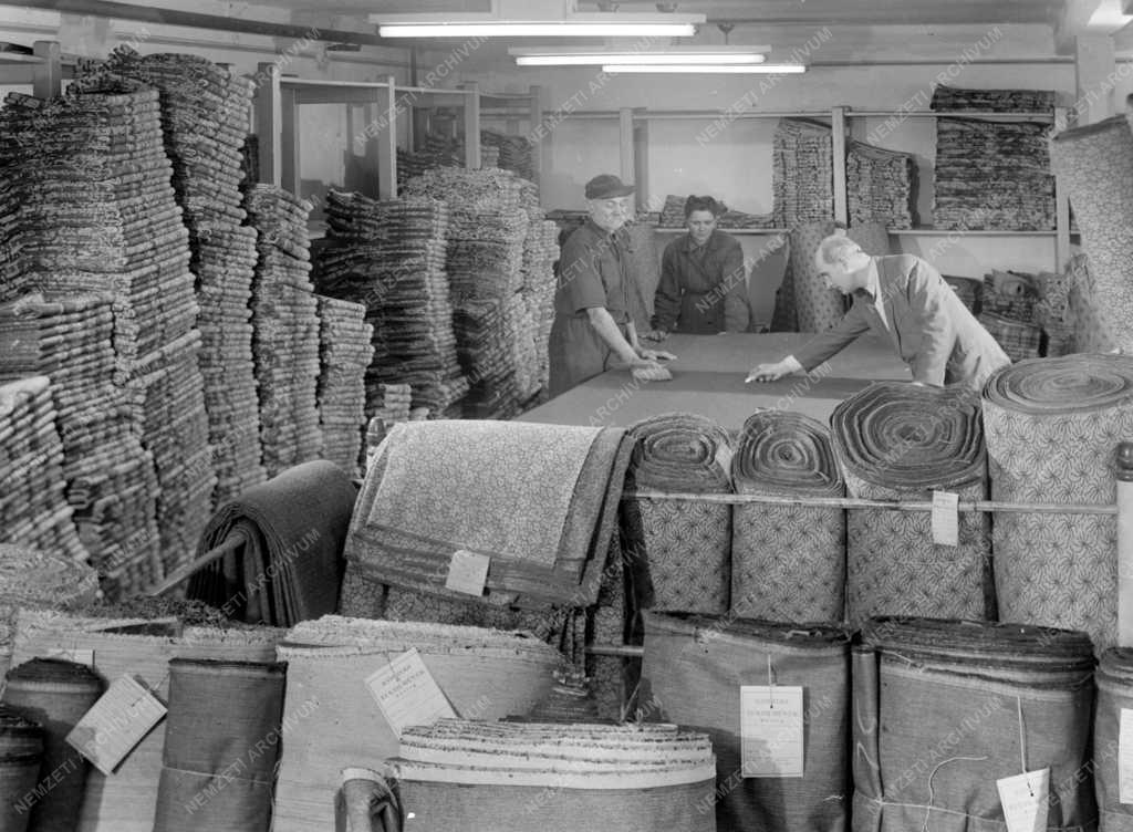 A Kőszegi Textilművek Ágyterítő és Bútorszövet gyárának készáruraktára.