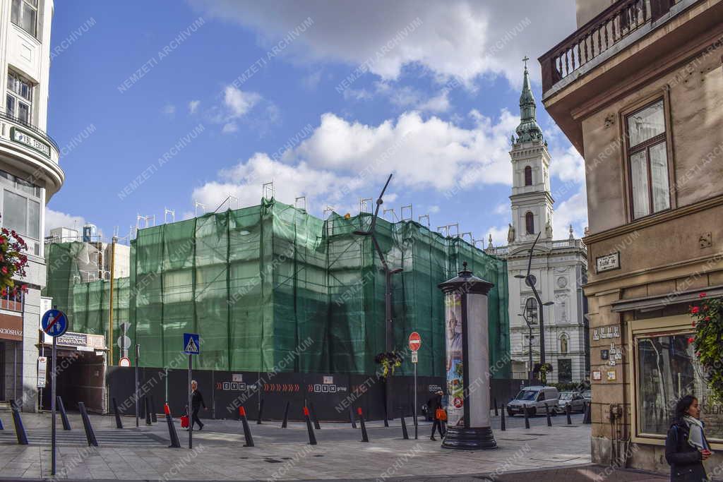 A parkoló- és irodaház bontása az V. kerületi Szervita téren.