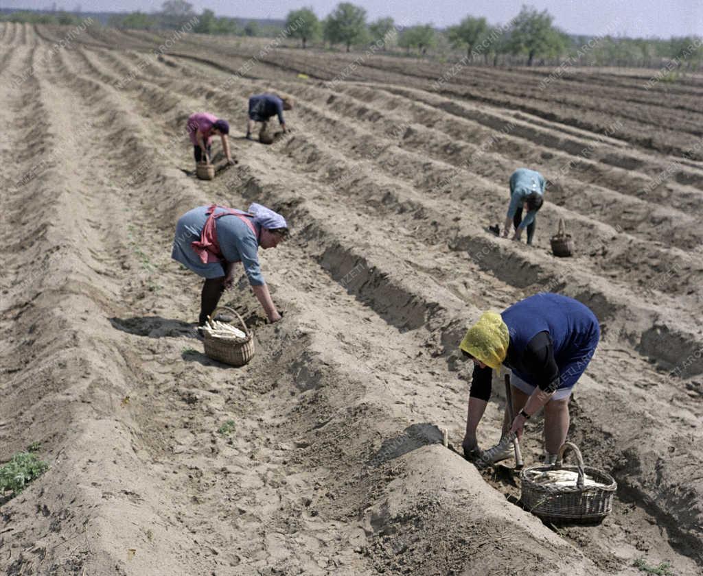 A Béke Mezőgazdasági Szakszövetkezet dolgozói betakarítják a termőföldről a spárgát. A szövetkezet már két éve termeszti és exportálja a hazánkban még ritka növénynek számító spárgát, amelynek termesztése jól is jövedelmez.