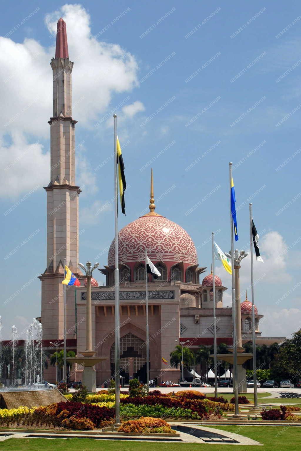 A Putrajaya-tó partján álló, 1997-99 között épült Putra mecset. A Kuala Lumpurtól 25 kilométerre fekvő Putrajaya Malajzia új adminisztratív központja.