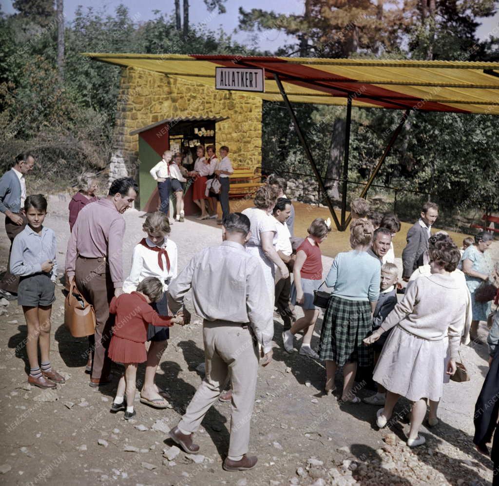 Látogatók az 1959 és 1961 között a Mecsekben, a Dömör-kapunál létesített Pécsi Állatkert bejáratánál.