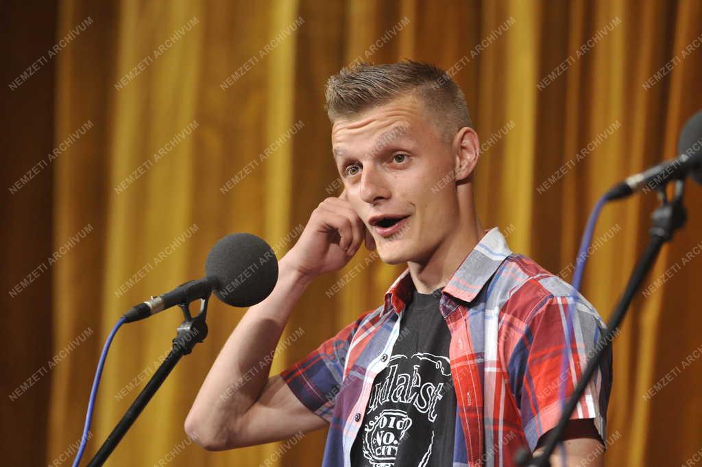 György Botond humorista ad elő egy jelenetet a Kossuth Rádióban elhangzó Rádiókabaré felvételén, a Honvéd Kulturális Központban rendezett nyilvános előadáson.