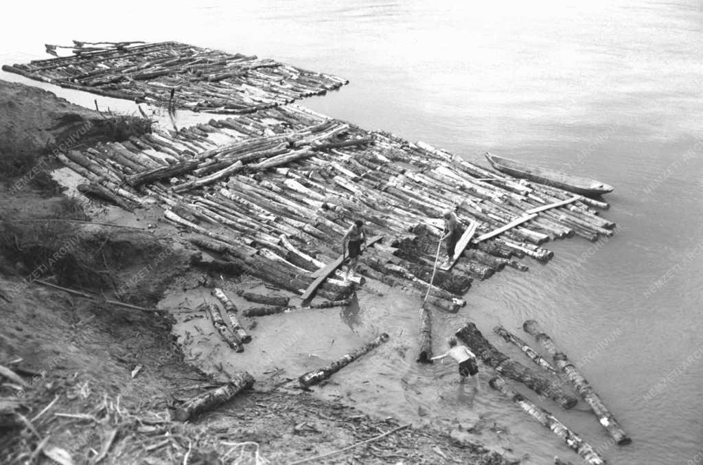 A Nyugat-Bükki Állami Erdőgazdaság tiszafüredi erdészetének alkalmazottjai 180 köbméternyi fát kötnek össze tutajnak a Tiszán, Tiszaörvény magasságában. Az erdészet Tiszafüredről tutajjal szállít fát - a vízállástól függően 7-12 nap alatt - a szegedi Falemezáru-gyárnak.