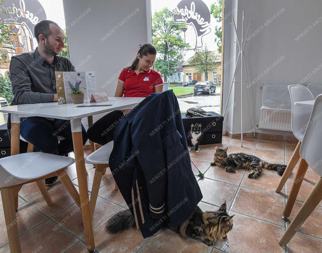 A debreceni vendéglátásban új szolgáltatást jelenített meg a Macskávézó, ahol a vendégtérben tíz jól szocializált cicával egy társaságban élvezhetik a kávéházi kínálatot a betérők. A különböző fajtájú, folyamatos állatorvosi felügyelet és tisztántartás mellett élő kedvencek tápláléka és vitaminos étrendje sem szokásos. A kávézó egy hónapos népszerűsége miatt csak előzetes asztalfoglalással lehet bejutni.