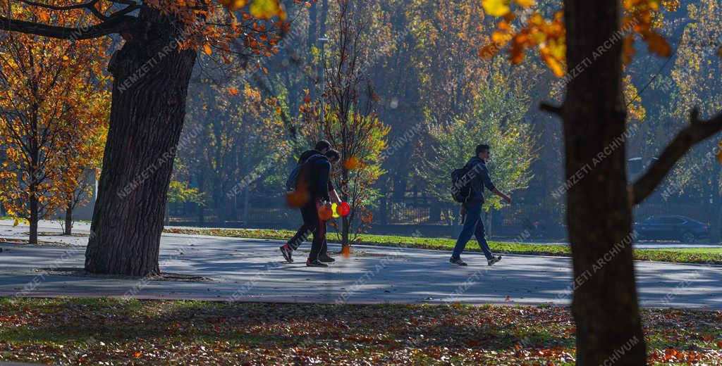 Az őszutó napos időjárását többen töltik kikapcsolódással sétával, sütkérezéssel, sporttal, családi együttléttel a debreceni Nagyerdőben.