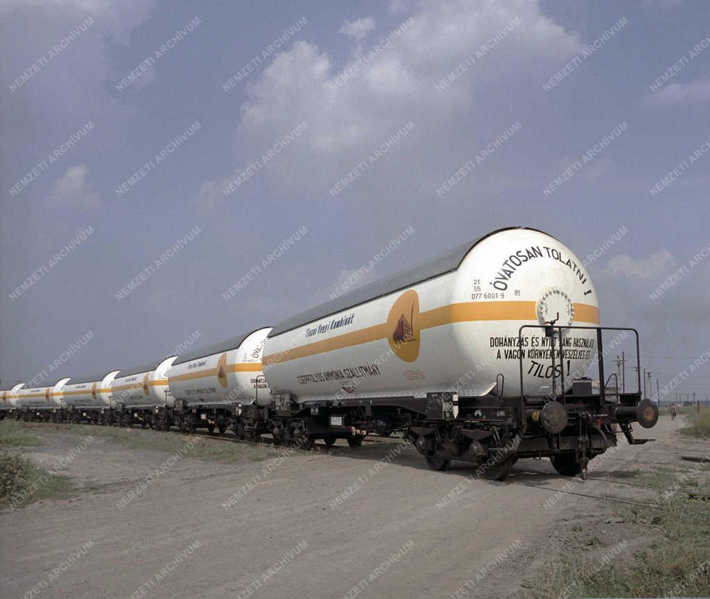 A folyékony ammónia szállítására Franciaországból vásárolt speciális vonatszerelvény a Tiszai Vegyi Kombinátnál (TVK).