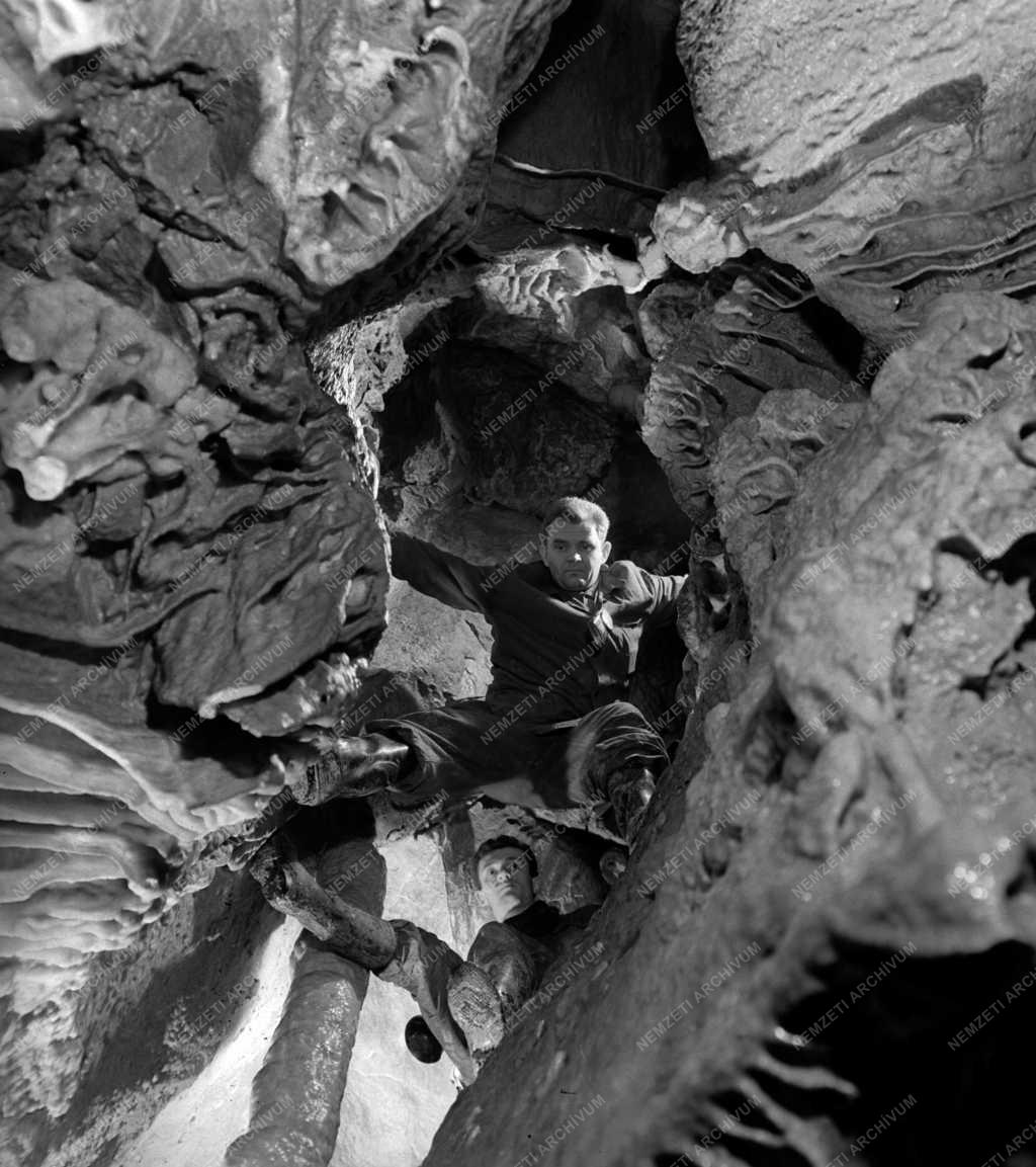 Fotóriporterek másznak a sziklákon a Retekág felső részén a Baradla-barlangban. A mészkőhegyek belsejében húzódó barlangokat bátor barlangkutatók tárják fel. Munkájuk eredménye: a nemzetközileg ismert aggteleki barlangvidék, ahol ma már öt nagy barlangot tartunk számon. Ezt a területet keresték fel fotóriportereink, hogy megörökítsék a barlangkutatás veszélyes és izgalmas mozzanatait: a kutatómunka eredményeként feltárt hatalmas szakadékokat, érdekes formájú sziklaóriásokat és a változatos, a szivárvány minden színében tündöklő szebbnél-szebb cseppköveket. Munkájuk során felkeresték a barlangok legrejtettebb zugait, ahová csak szűk sziklahasadékokon, kürtőkön át kötélhágcsók segítségével, vagy hason csúszva lehet eljutni.