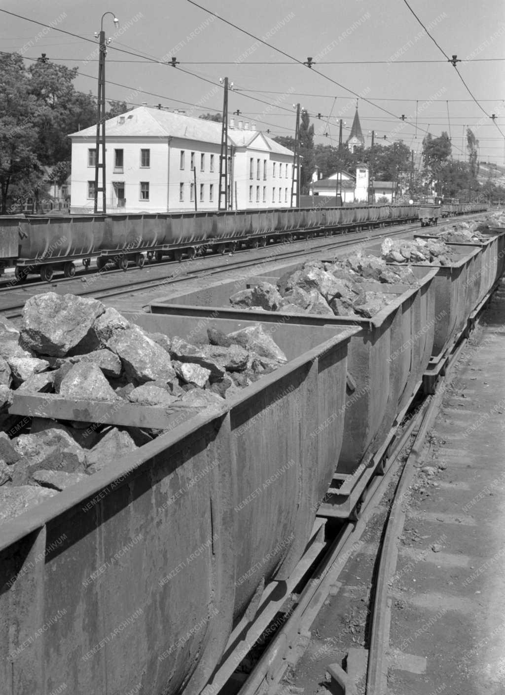 A fennállásának 75. évfordulóját idén ünneplő Rudabányai Vasércbánya csillepályaudvara, háttérben a még befejezés előtt álló fürdőépület.
