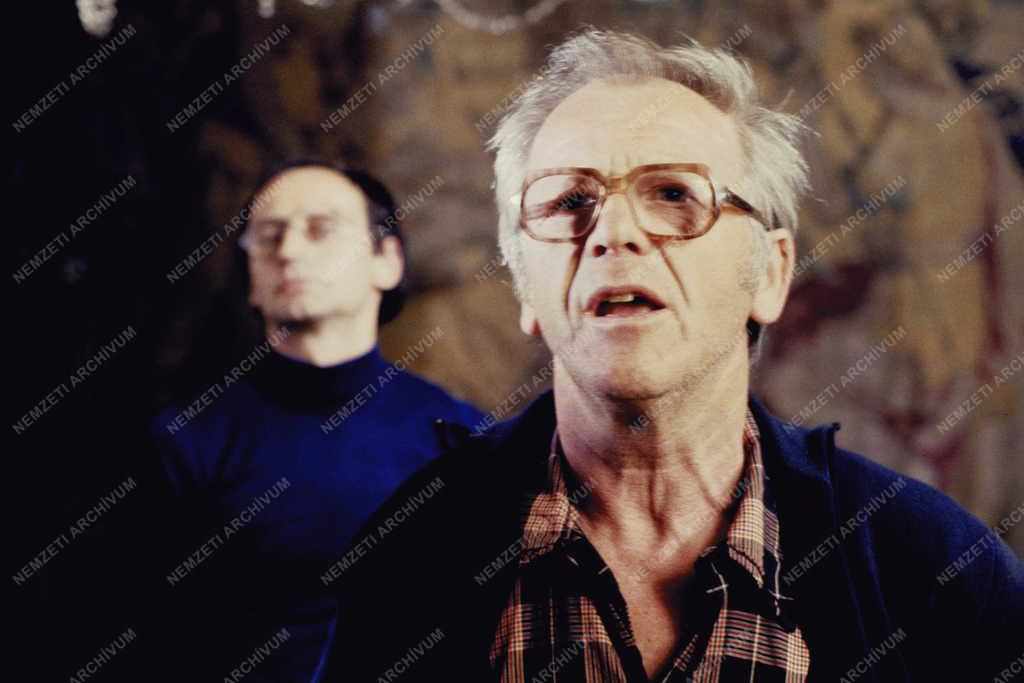 Szoboszlay Sándor (j) A tranzitutas című tv-film egy jelenetének forgatásán, háttérben Reviczky Gábor. A felvétel készítésének pontos dátuma ismeretlen.