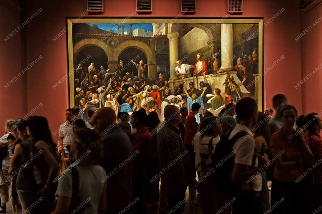 Látogatók nézik a 11. Múzeumok éjszakája debreceni rendezvénysorozatán a Déri Múzeumban Munkácsy Mihály Ecce Homo című, 1896-ban festett képét.
