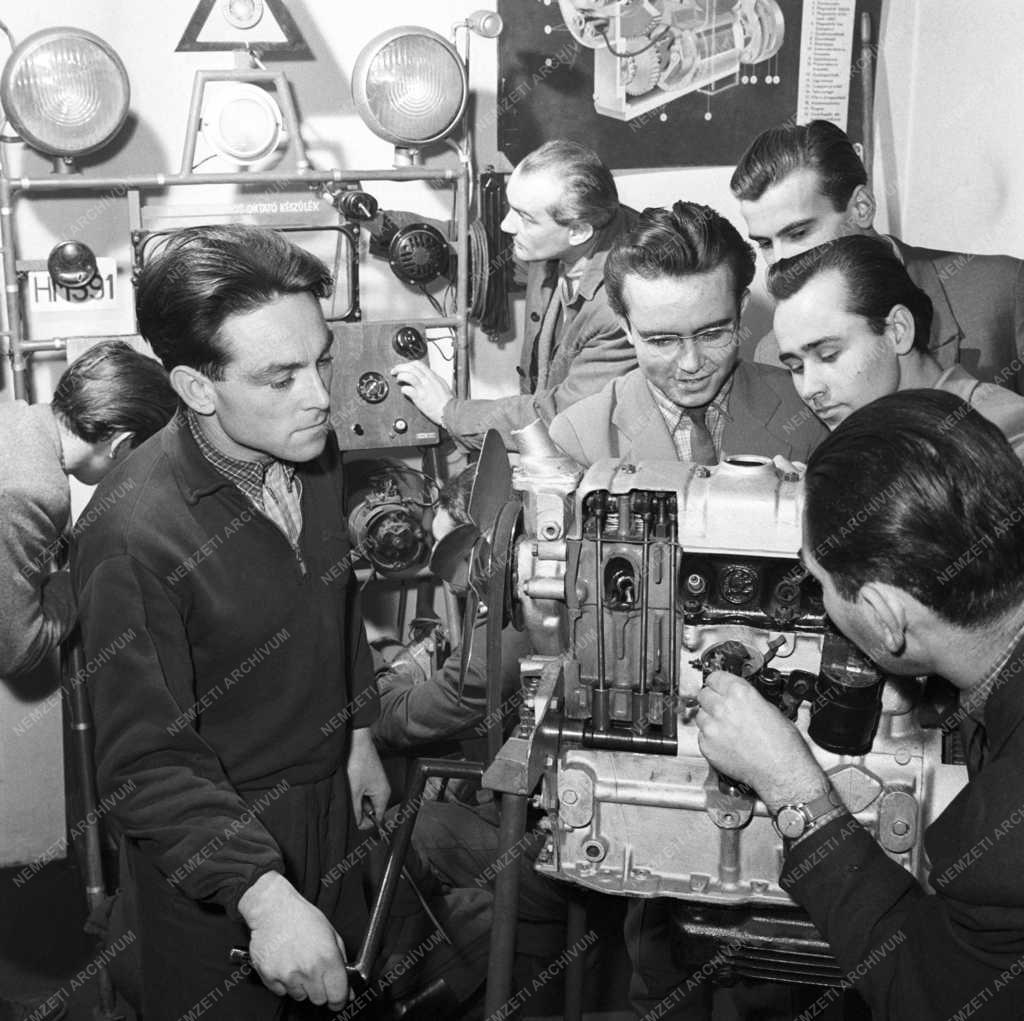 Motorszerelési gyakorlat az Autóközlekedési Tanintézetben, ahol gépkocsivezetői tanfolyamok mellett 13-féle különleges szaktanfolyamot is tartanak.