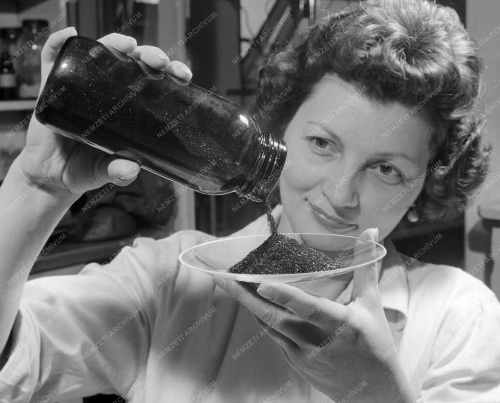 A laboratóriumi dolgozó szárításhoz készíti elő a tiszta B12 vitamin-kristályokat, amely a vészes vérszegénység egyetlen gyógyszere.